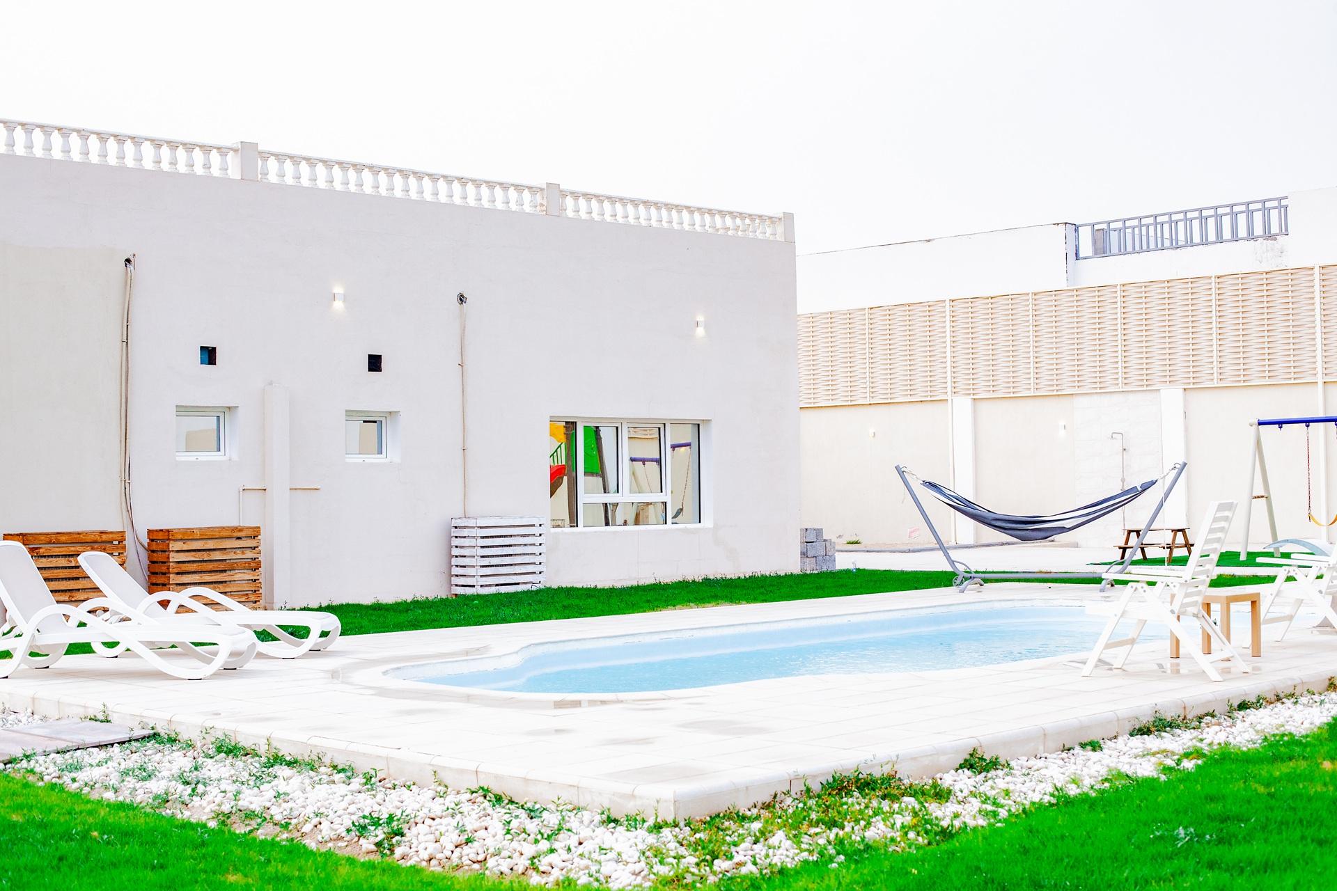 فيلا رائعة بثلاث غرف نوم وصالة معيشة أنيقة بأثاث فاخر. ولراحة إضافية، تضم الفيلا مجلسًا خارجيًا منفصلًا على شكل خيمة، ومنطقة لعب جميلة للأطفال، ومسبحًا، ومطبخًا مجهزًا بالكامل.