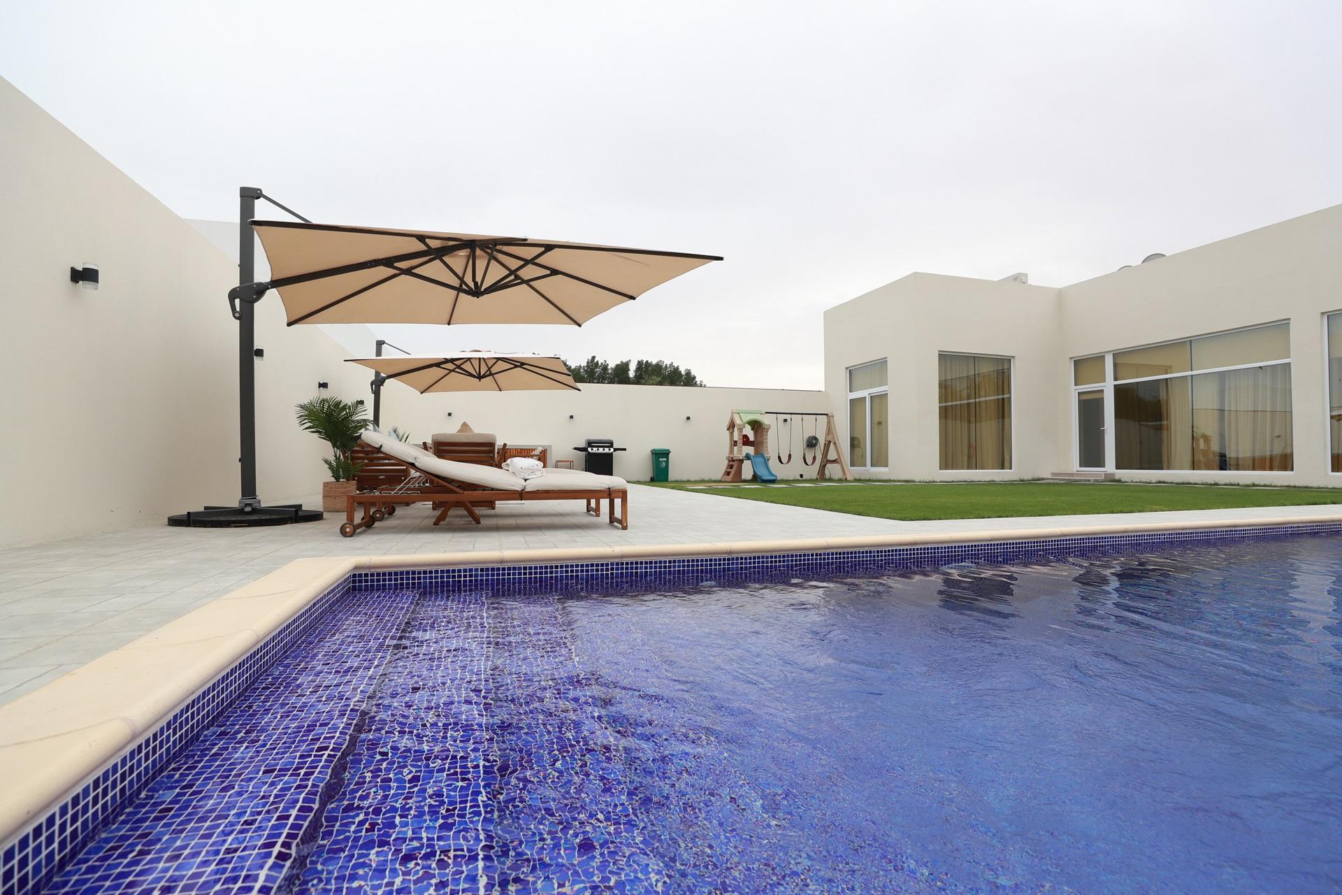 استراحة صغيرة لطيفة للعائلات ذات العدد الصغير للاستمتاع بيوم رائع مع مسبح خارجي 10 م × 3 م بعمق 1.60 م وغرفتي نوم ومنطقة للشواء وملعب للأطفال