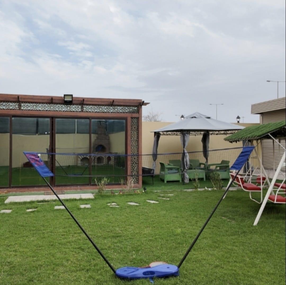 استراحة من طابق واحد + طابق أرضي تتكون من 4 غرف نوم، 2 منهم غرفة نوم رئيسية وحوض سباحة داخلي ومنطقة لعب أطفال خارجية تقع في منطقة الصخامة، حيث يتم ضمان الخصوصية.