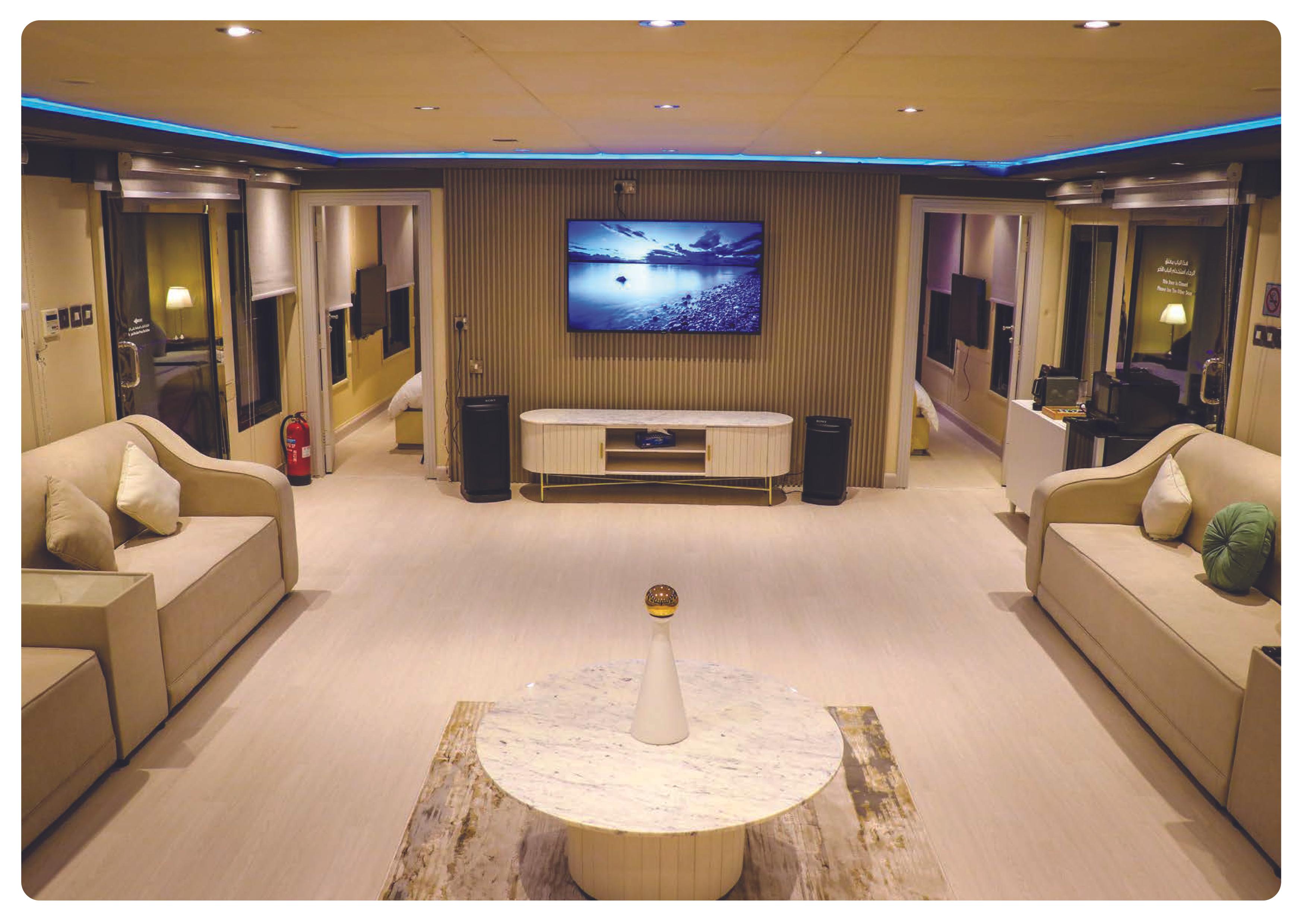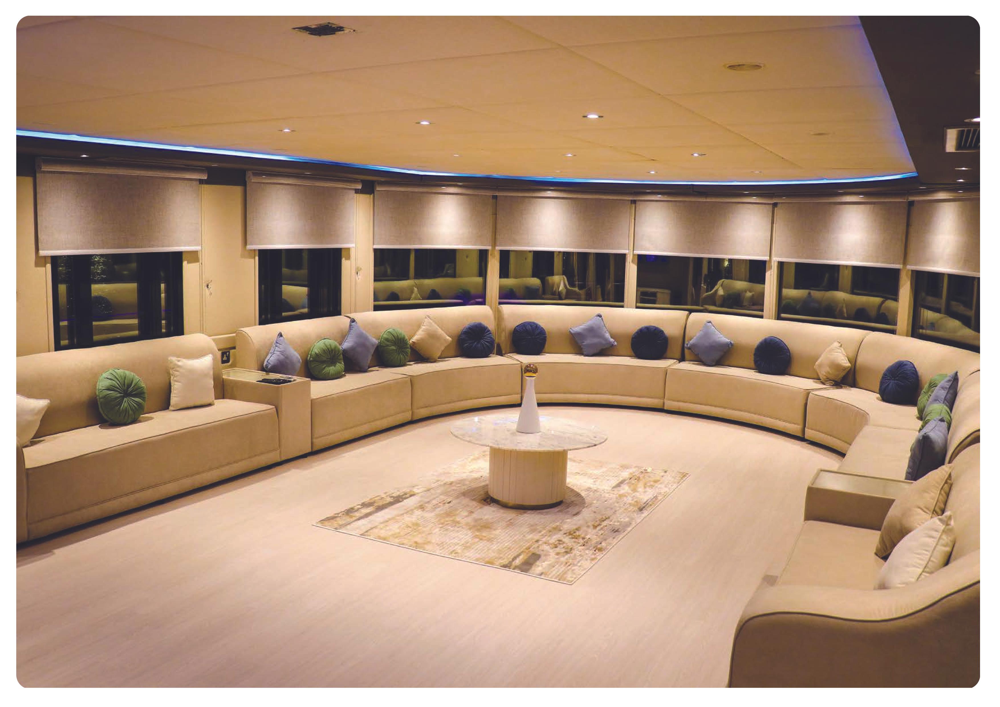 A luxury yacht located in Pearl consists of 1 hall, 2 master bedrooms, 2 bathrooms, 3 outside sitting areas, and 1 spacious roof.
