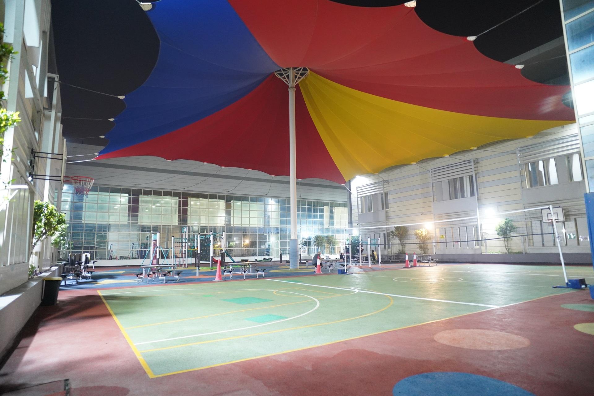 Outdoor Volleyball court covered located inside Pearling Season International School