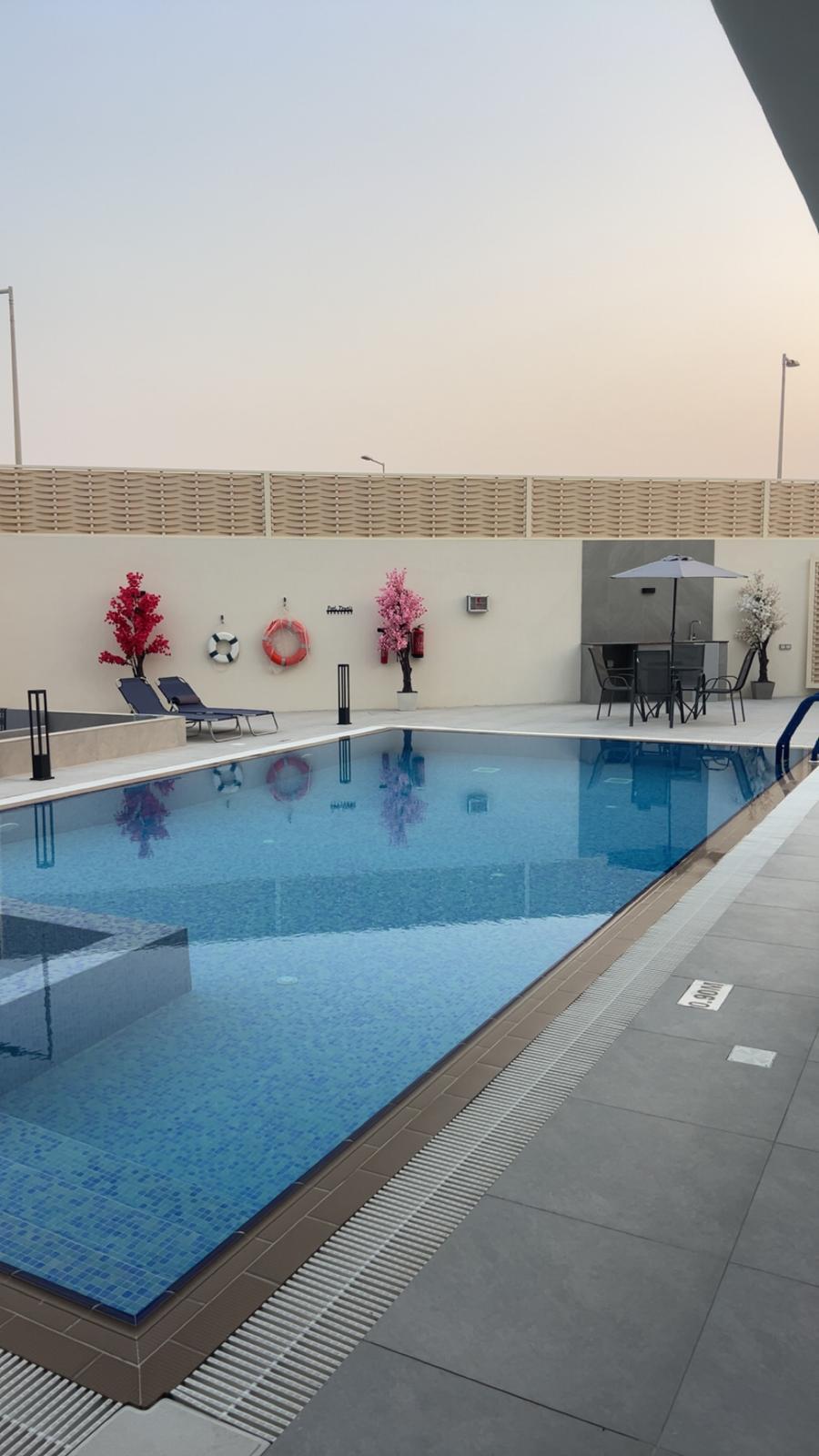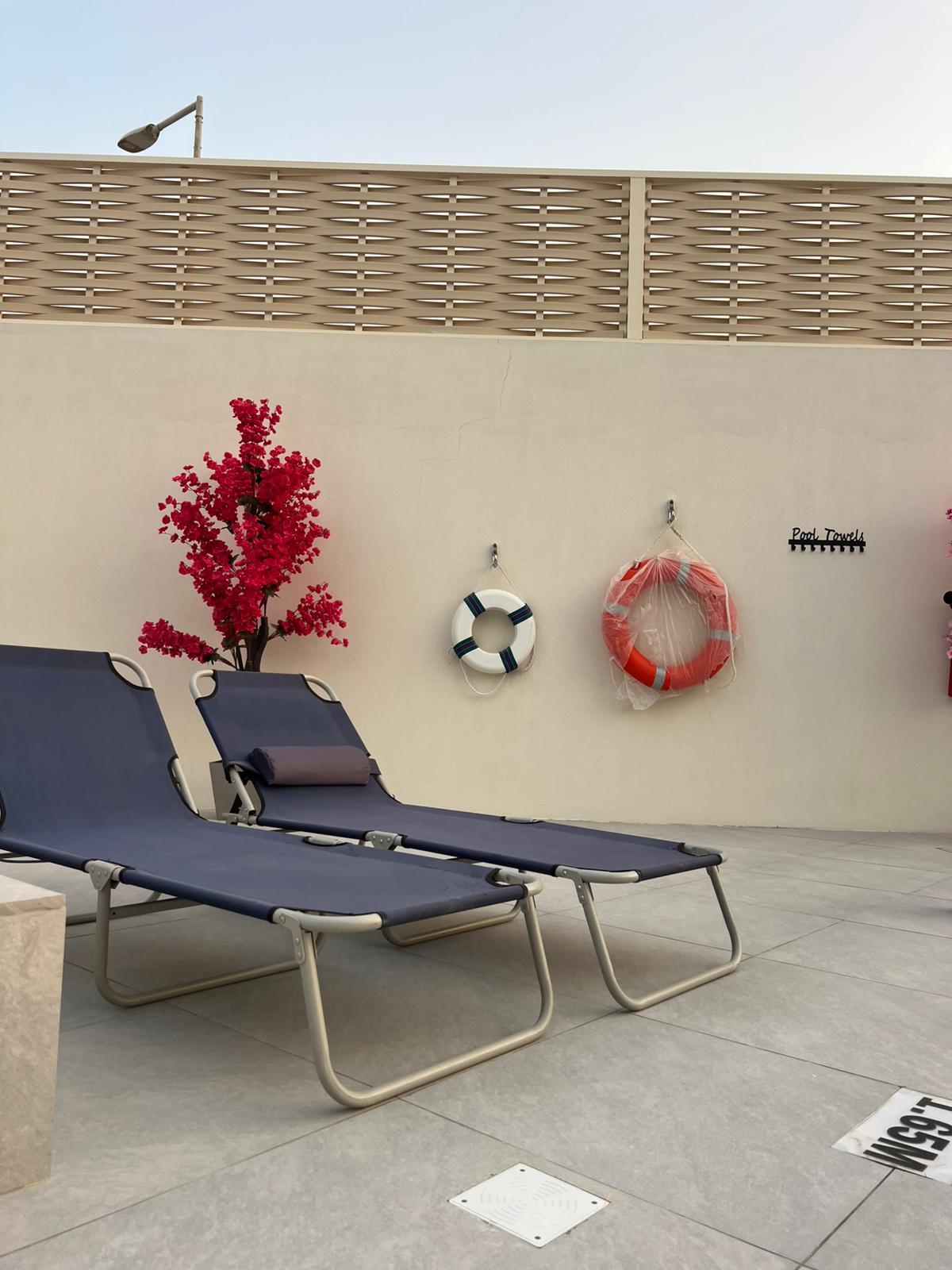 Indulge yourself and your loved ones with this luxurious, 3 master bedroom resthouse located in Al Ruwais, 2 minutes from Al Ruwais corniche. The rest house includes a refreshing outdoor swimming pool, and a sperate kids pool, all equipped with outdoor showers. For the outdoor activities the rest house offers a BBQ area with its own hand washing facility. Inside you will get 2 master bedrooms with king size beds and third master bedroom with 2 single beds. A fully equipped kitchen and a 12 person dining table inside the large living room that has a big smart TV and high s[peed Wi-Fi connection.