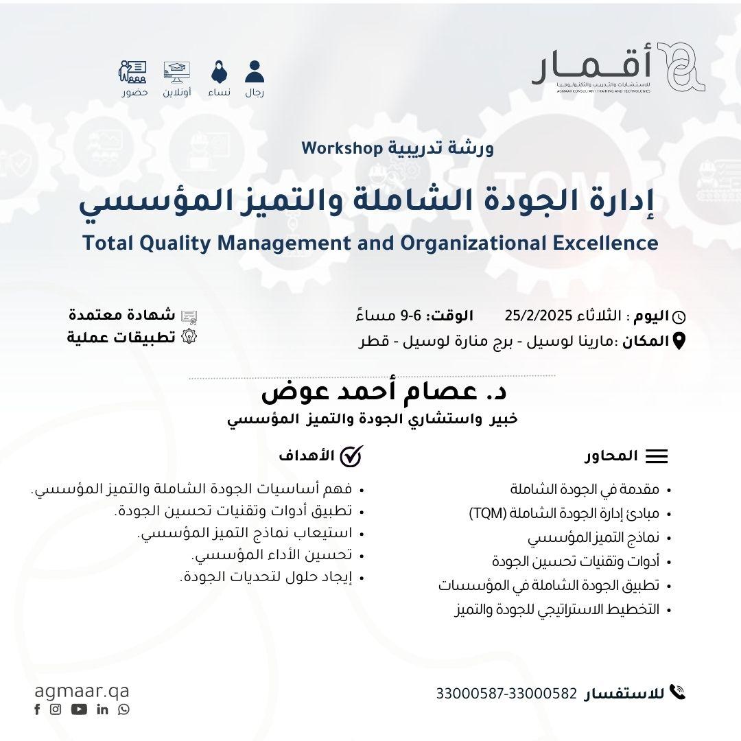 Join us for an insightful session on TQM and Quality Excellence! đ Date: Tuesday, April 9, 2025 â° Time: 6:00 PM - 9:00 PM đ Explore key principles of Total Quality Management (TQM), practical quality improvement tools, and models for achieving organizational excellence. đ Register now: https://forms.gle/ThgzrAge985dYnr66 Donât miss out on this opportunity to enhance your knowledge and skills in quality management!