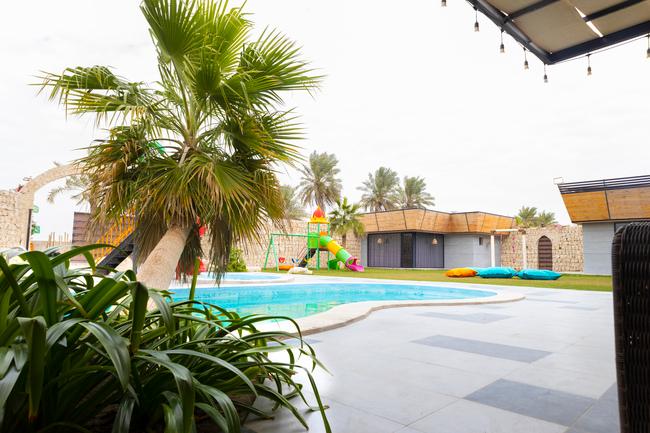 A resort with hotel standards and services designed in a classic style inspired by the ancient Bohemian Roman civilization, with a unique touch of the present to make you live a wonderful and unforgettable experience throughout your stay in it. The lounge consists of three bedrooms and a large dining area with a guest bathroom, kitchen, games, indoor and outdoor seating, and an outdoor swimming pool for adults and children with a shower and a kids playground. Available also for engagements parties, Henna nights and family celebrations.