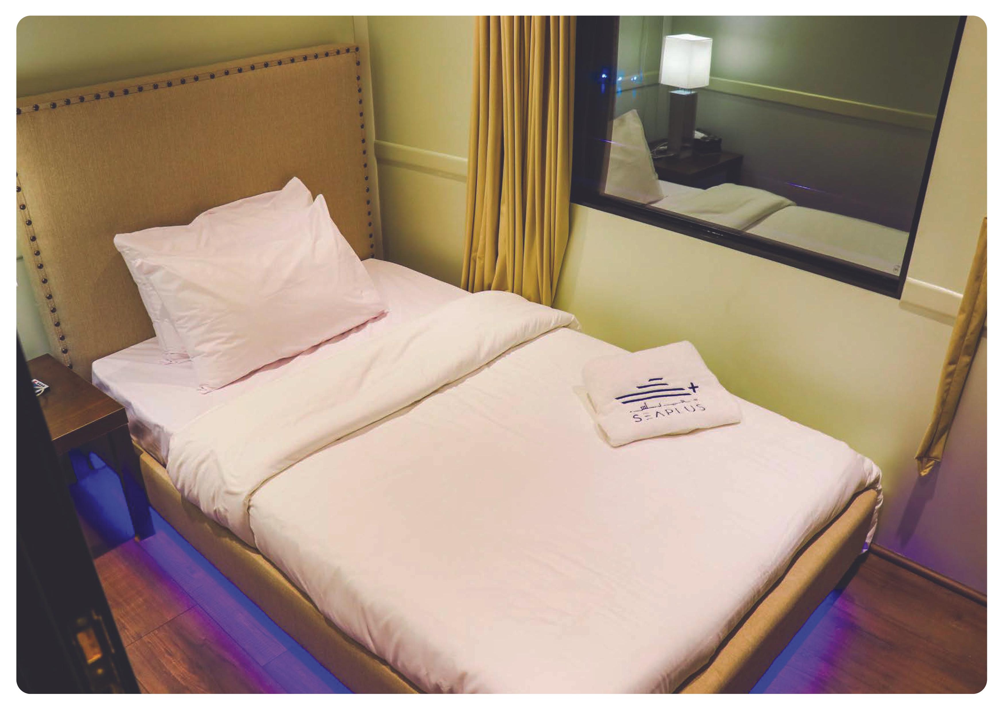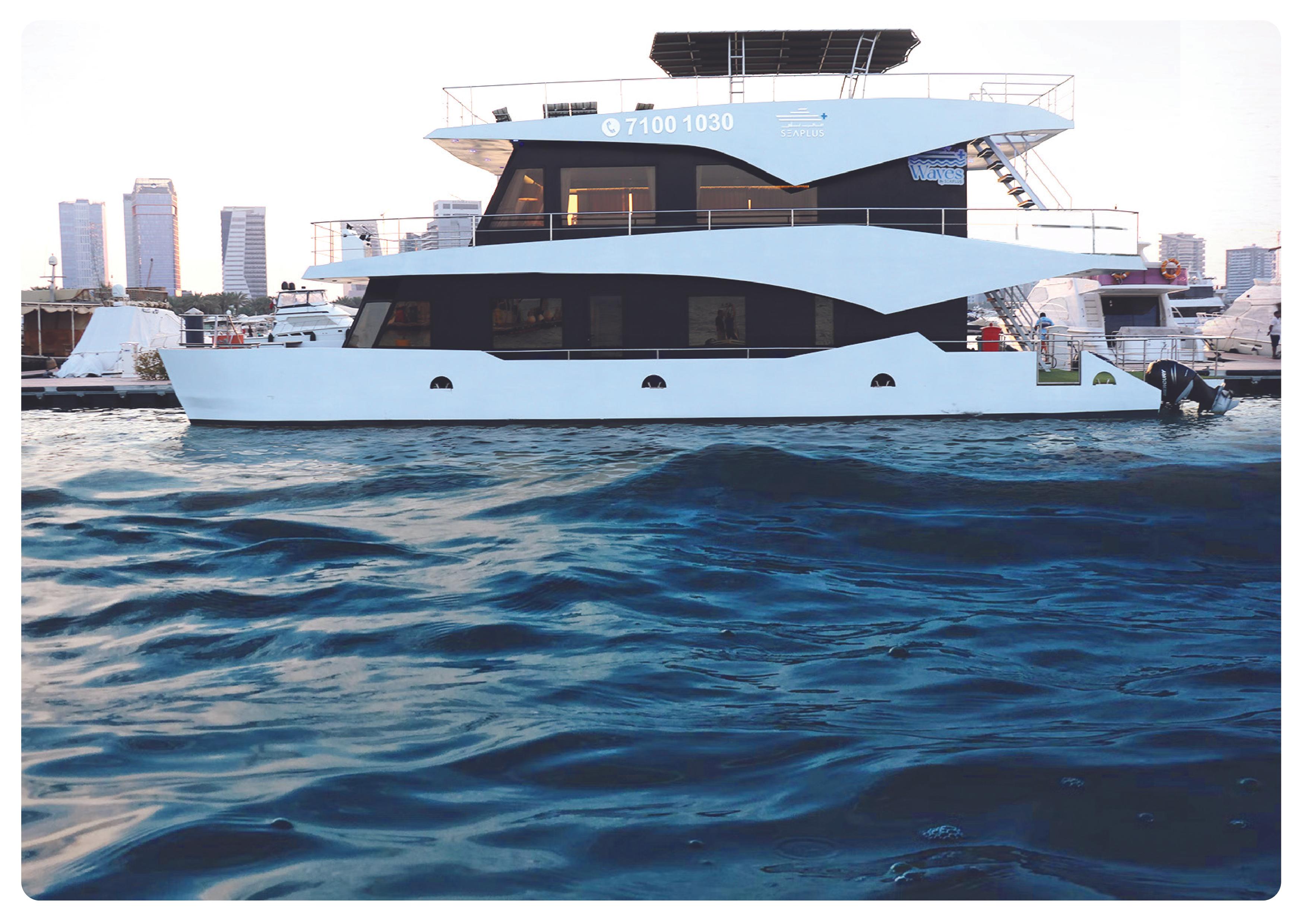 A luxury yacht located in pearl consists of 2 halls, 2 master bedrooms,2 bathrooms, 2 outside sitting area, and 1 Spacious Roof.