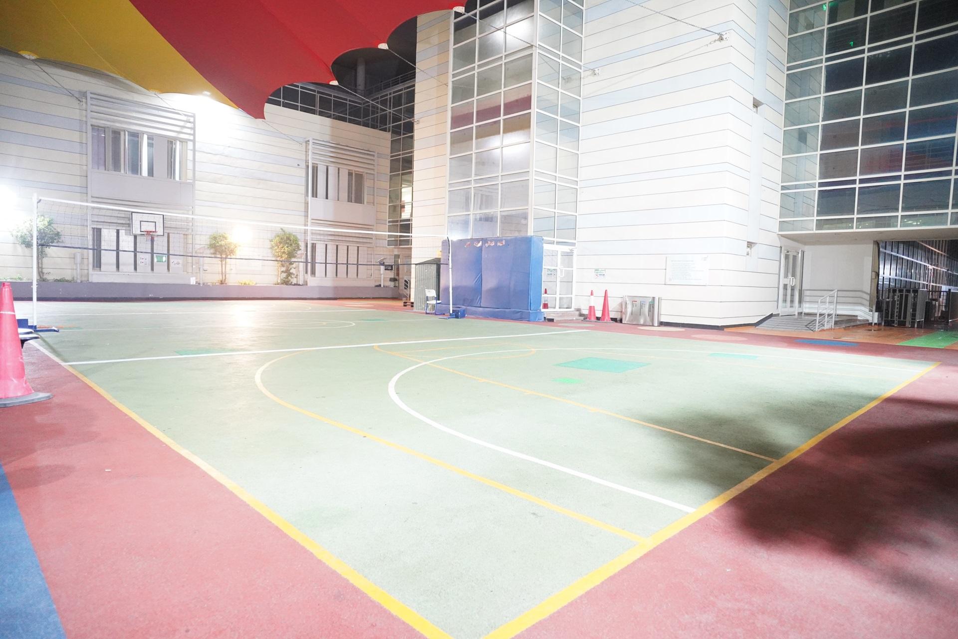 Outdoor Volleyball court covered located inside Pearling Season International School