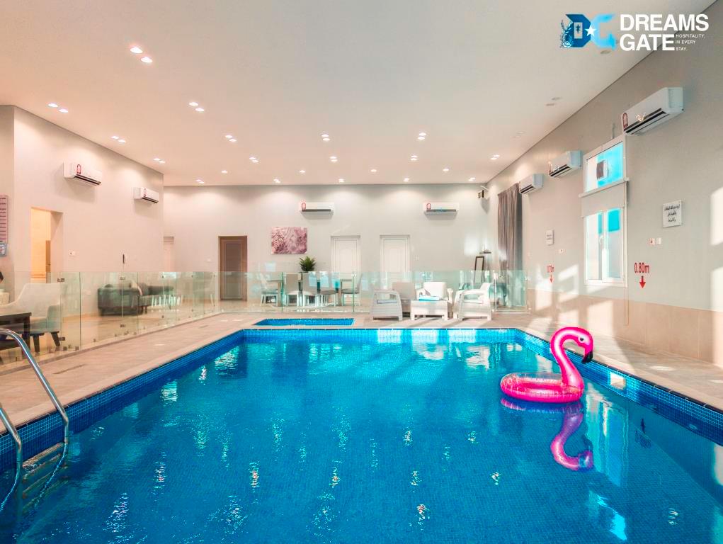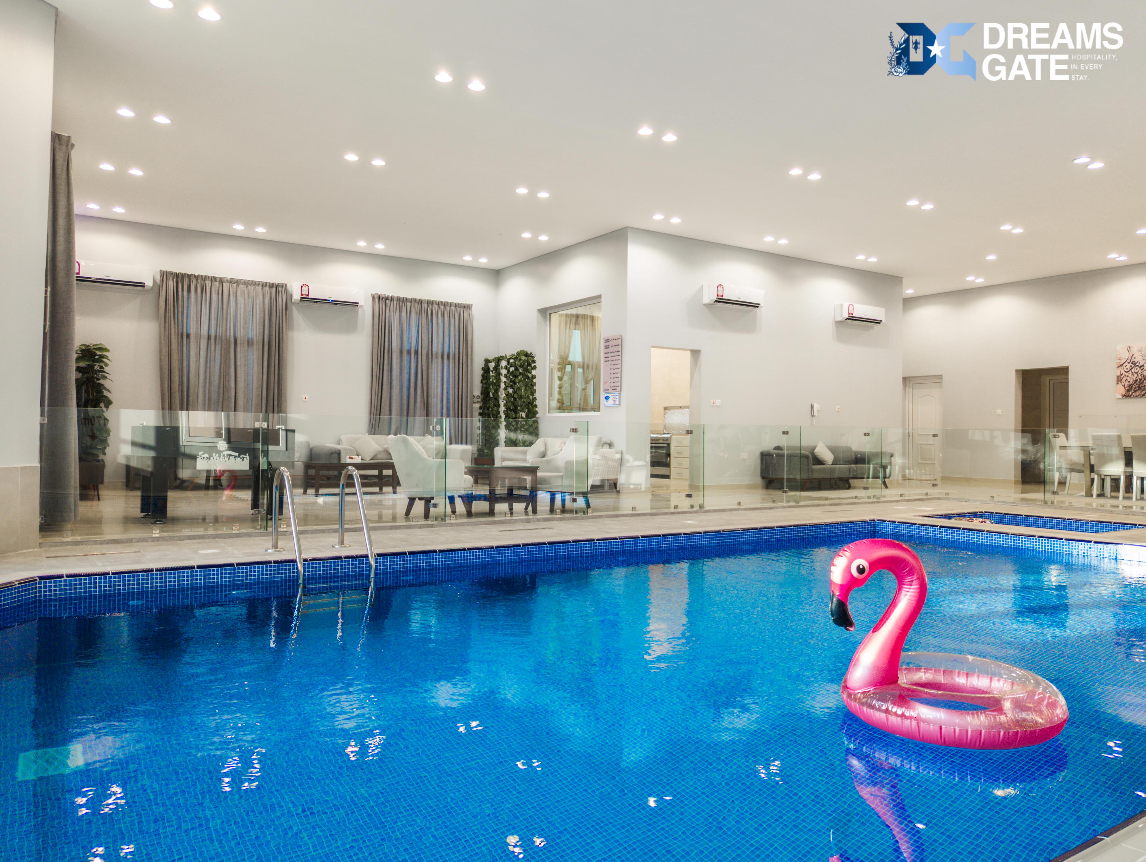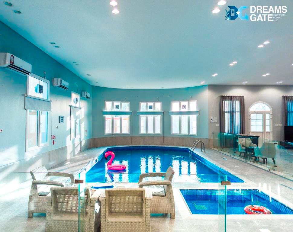 Villa 7 is the perfect escape for families and groups seeking comfort and fun. This charming villa features 4 cozy bedrooms 🛏️ and 4 modern bathrooms 🚿, providing ample space for relaxation. Enjoy year-round leisure with two inviting indoor pools 🏊♂️, perfect for a refreshing swim any time of the year. Children will love the dedicated playground 🛝, ensuring hours of entertainment, while sports enthusiasts can take advantage of the football field ⚽ for friendly matches. With a large outdoor area 🎉, this villa is ideal for hosting events, celebrations, or simply enjoying the beautiful surroundings. Experience a delightful stay at Villa 7, where comfort and recreation come together!